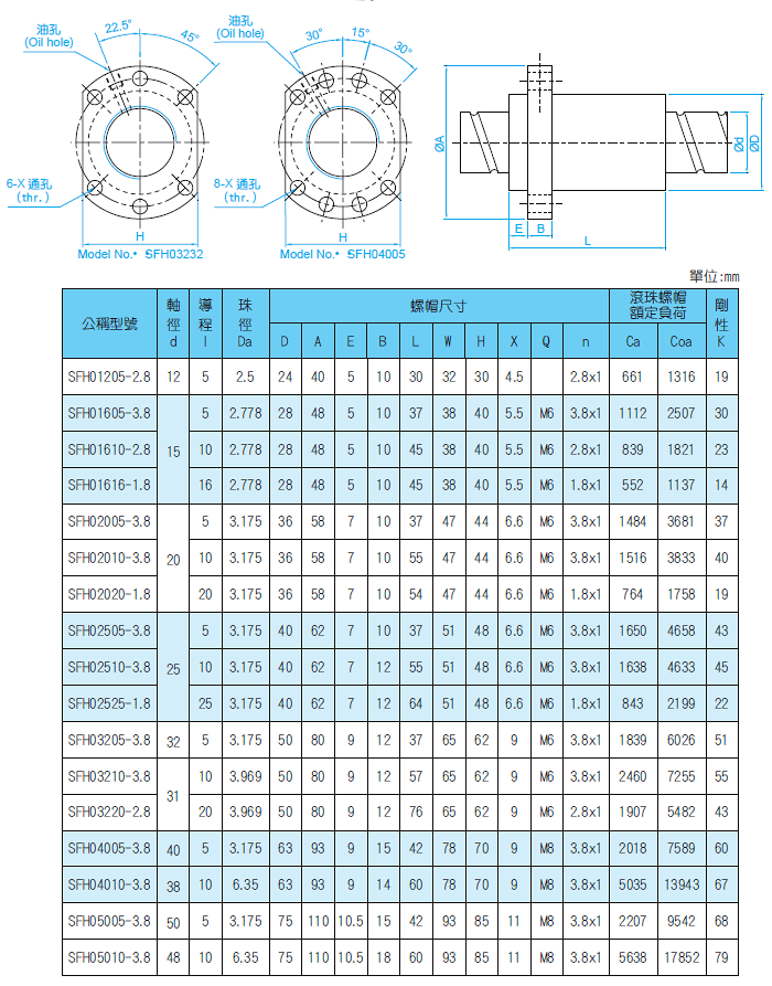 滚珠丝杆螺纹的主要参数: